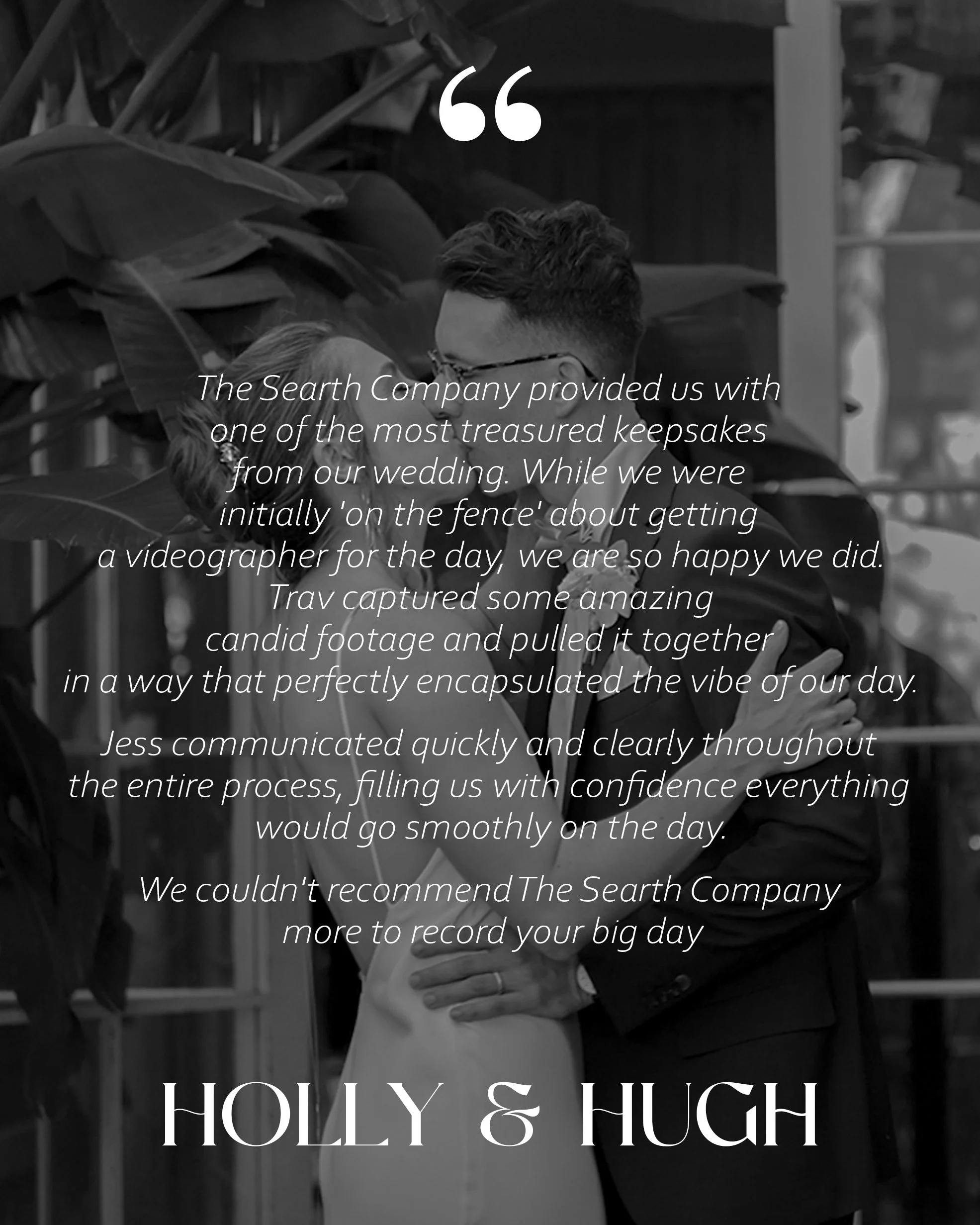 My style is fast paced and love filled. Slowing it down when needed to get those tear ducts working to then speed it up, jam-packing in all the details of the day. That way nothing is missed even if you missed it yourself from being too busy on the day. This gives you a film that reminds you of exactly how good your wedding day was!
